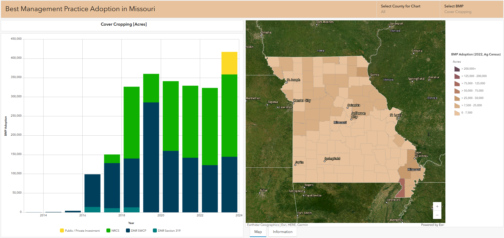 The next stage for GIS use is found in interactive, web-based products that make complex environmental data accessible to users. These tools allow stakeholders to explore spatial information, evaluate characteristics in the field, and better understand environmental conditions. At Waterborne, our scientists employ modern web GIS platforms to create custom dashboards and web pages that help clients visualize trends, track progress, and support informed decision-making. These tools bridge the gap between expert analysis and public understanding by summarizing key insights while enabling users to explore data at multiple scales.
